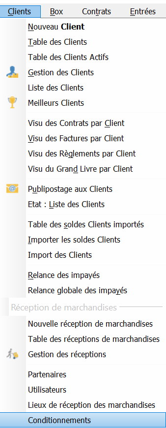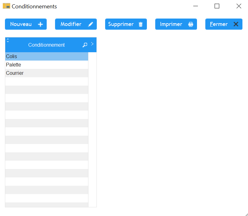 2 - Paramétrages des conditionnements et des lieux de stockage