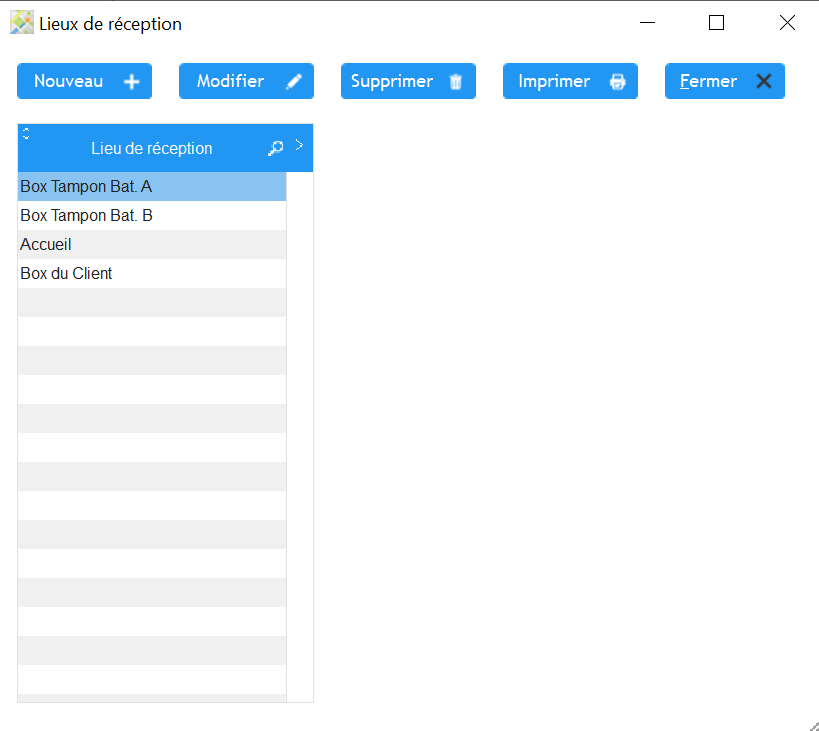 Pour chacun des lieux de réception (Accueil, Box Tampon…) les marchandises réceptionnées non encore récupérées sont listées. Cet état à imprimer doit être utilisé pour faire par exemple un inventaire physique hebdomadaire.
