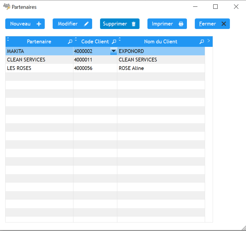 ASTUCE : choisir un nom de Partenaire qui correspond à ce que l’on risque d’avoir sur les bons de livraison: le nom de la société, l’enseigne, la marque…