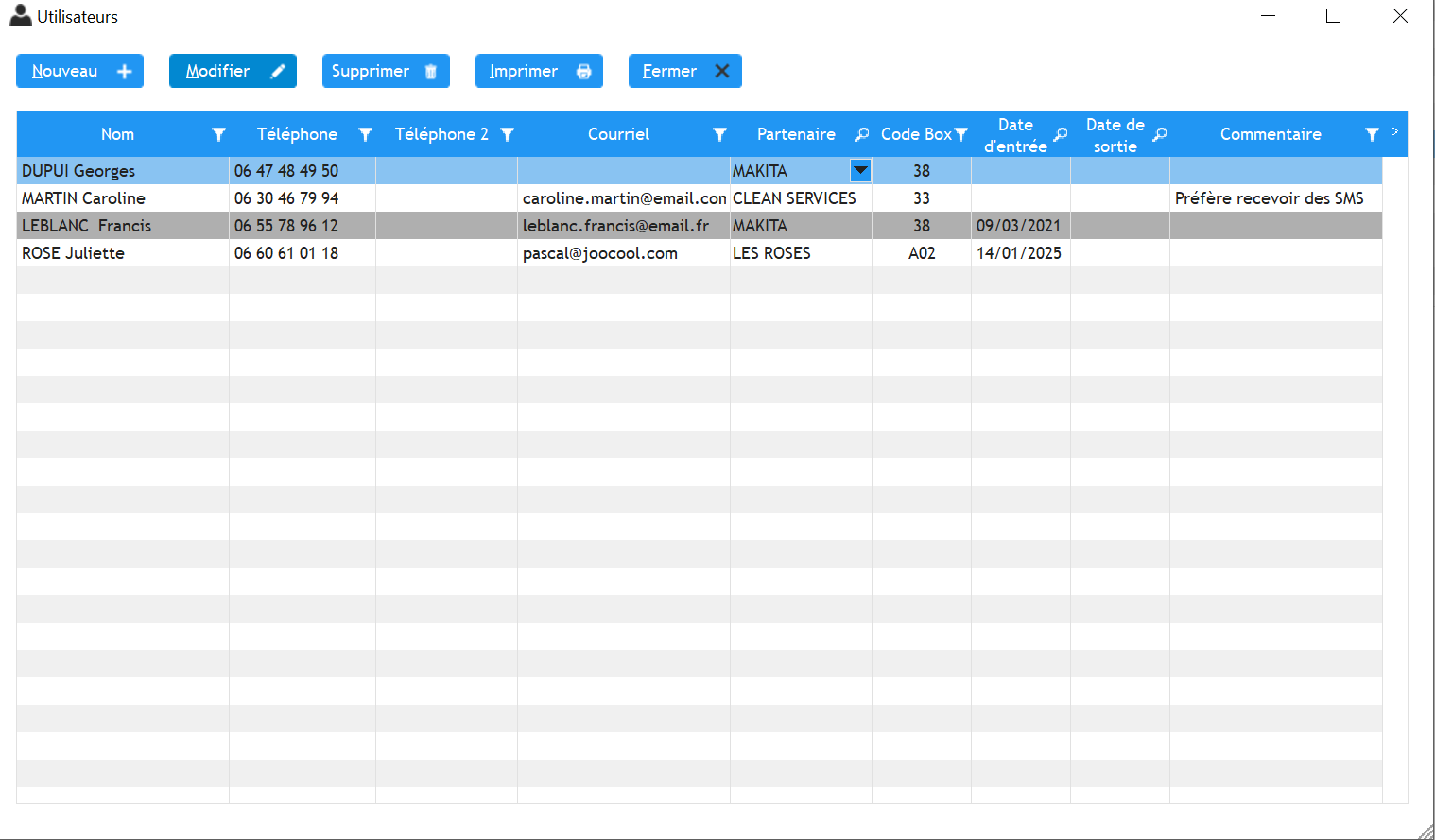 WBM distingue l’Utilisateur du Partenaire. L’Utilisateur est la personne physique destinataire de la marchandise il s’agit généralement du professionnel (commercial, technicien,…) qui vient récupérer la marchandise réceptionnée pour son compte. L’utilisateur travaille pour le compte du Partenaire. Le Partenaire est une société qui peut être soit directement notre client, soit le client de notre client lui-même réseau national de self-stockage comme, Annexx ou NationalBox, ou logisticien comme Euro Dislog.