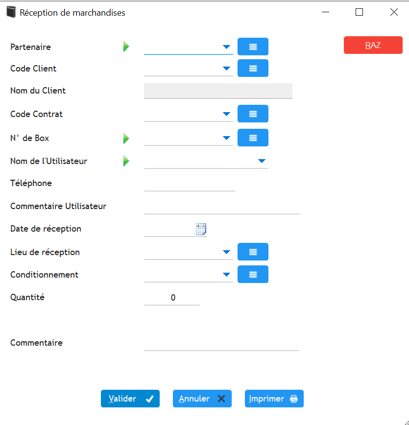 Une fois identifié le destinataire, il n’y a plus qu’à saisir la "Date de réception", le "Lieu de réception", le "Conditionnement" et la "Quantité".