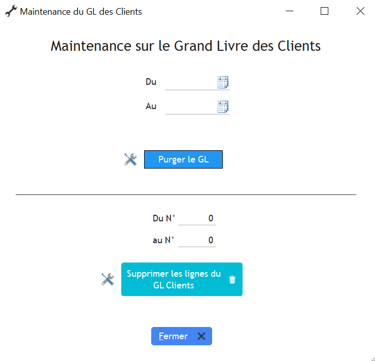 On purge le GL en utilisant le bouton « Purger GL ». Il faut bien faire attention de sélectionner les dates correspondantes à l’exercice clôturé précédent.