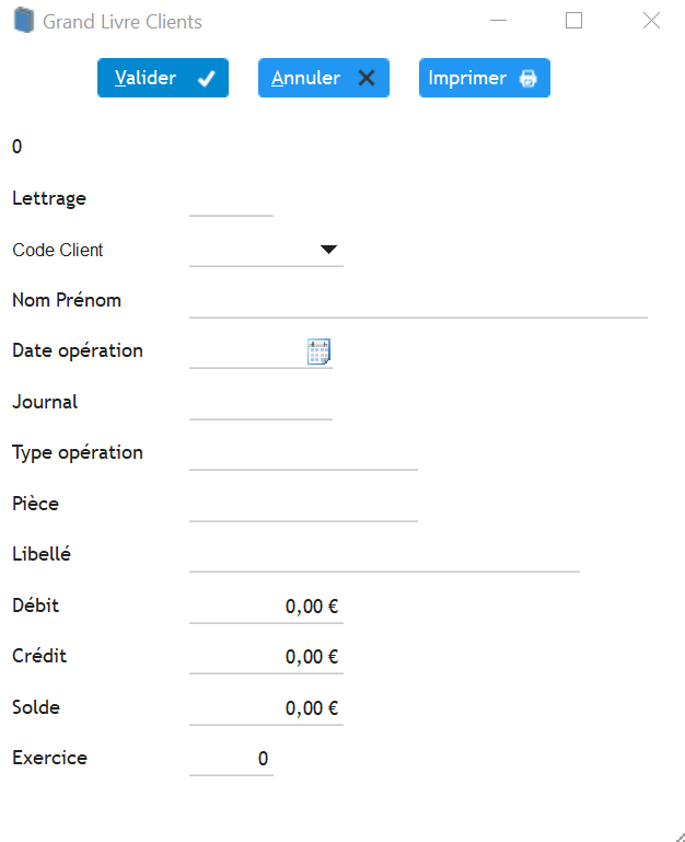 Une fois purgé le GL, on saisit les soldes clients à l’ouverture de l’exercice en utilisant le bouton « Nouveau »: